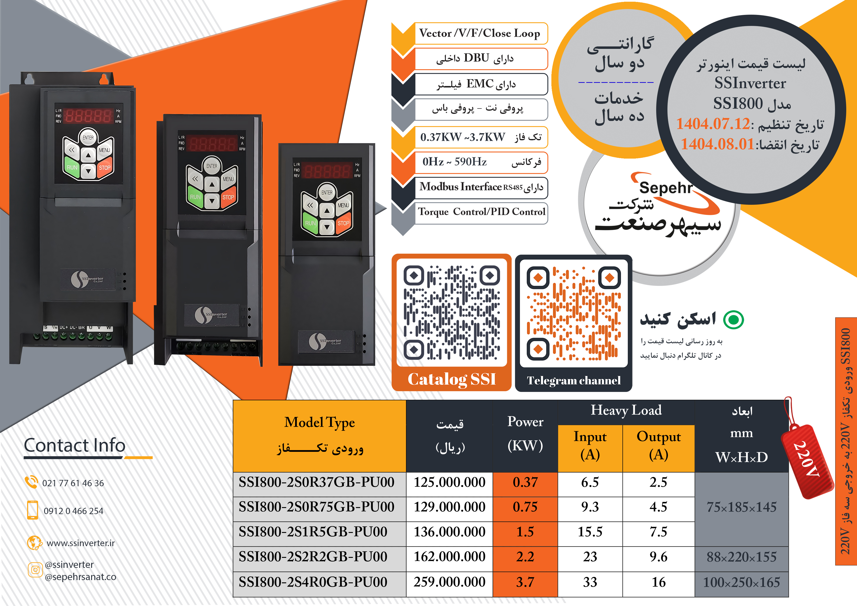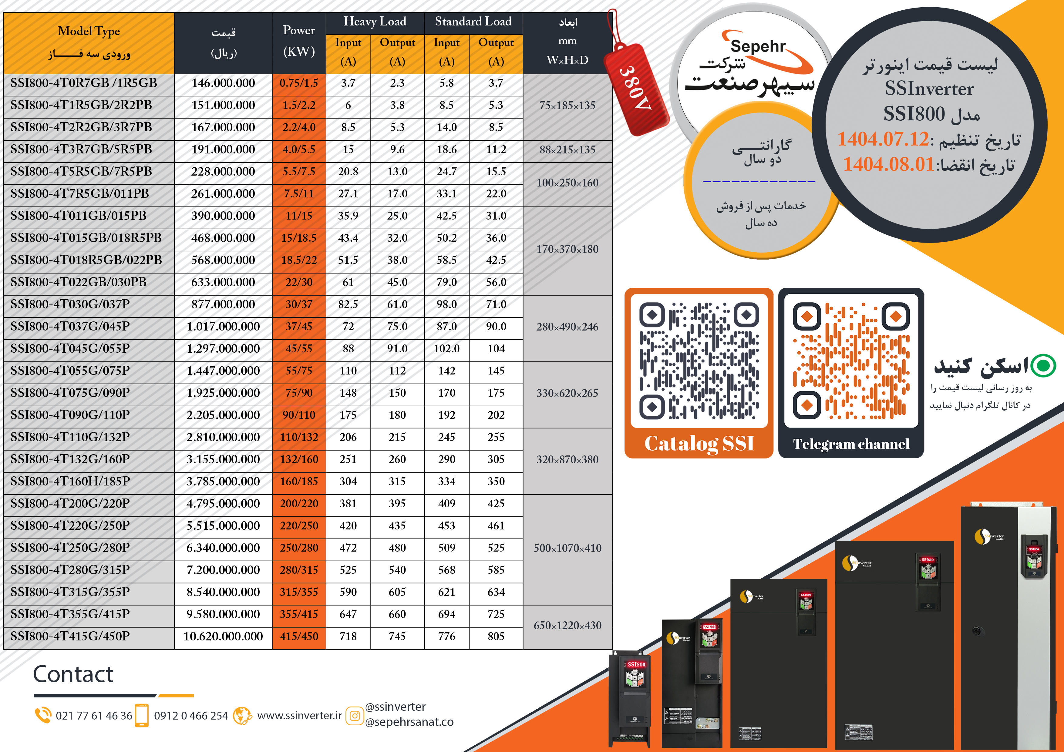 لیست قیمتSSI800(سه فاز)رادانلودکنید